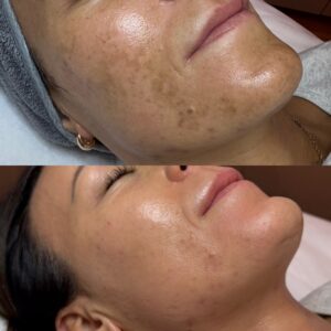 Efter behandlingen kan du uppleva en mild rodnad och fjällning, vilket är en naturlig del av hudens förnyelseprocess, Resultaten blir synliga efter några veckor, och du kommer märka en klar förbättring av hudens utseende och en betydande minskning av pigmentfläckar. Oftast räcker det med en behandling för att få bort fläckarna men har du haft melasma eller pigmenteringarna länge kan du behöva upprepa behandlingen efter 6 månader.